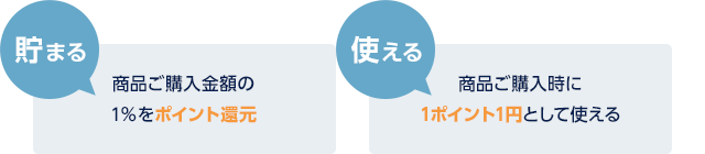 商品価格(税抜)の1%がストアポイントとして付与され、次回ご購入時に1ポイント1円としてご利用いただけます。