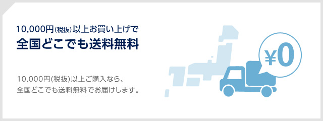 10,000円(税抜)以上のお買い上げで、全国どこでも送料無料